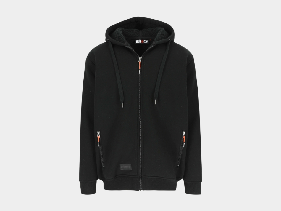 Sweater met HEROCKĀ® print, kap en lange rits. 2 steekzakken, 1 verdekte mouwzak, ribmanchetten en -onderkant.