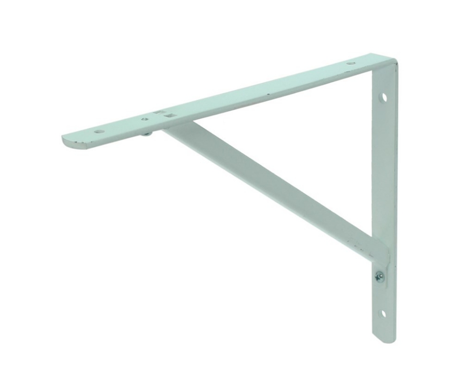 Plankdrager, driehoek, met demontabele schoor, leverbaar in verschillende afmetingen. Door de demontabele schoor is deze plankdrager gemakkelijk te monteren.