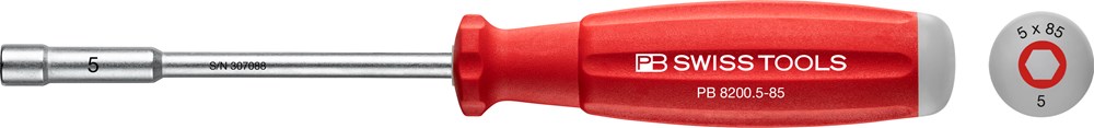 SwissGrip dopschroevendraaier voor buiten-zeskantschroeven. Bolrond hecht met zachte oppervlakte voor hoge draaimomenten. Kleurcodering naar schroeftype, snelle herkenning.
