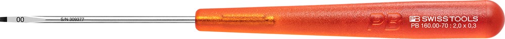 Elektronica-schroevendraaier voor kleine gleufkop-schroeven in de elektronica en fijnmechanica. Precieze, maatnauwkeurige punten, optimale passing in de schroeven. Lang, slank hecht, voor fijn schroef- en justeerwerk.