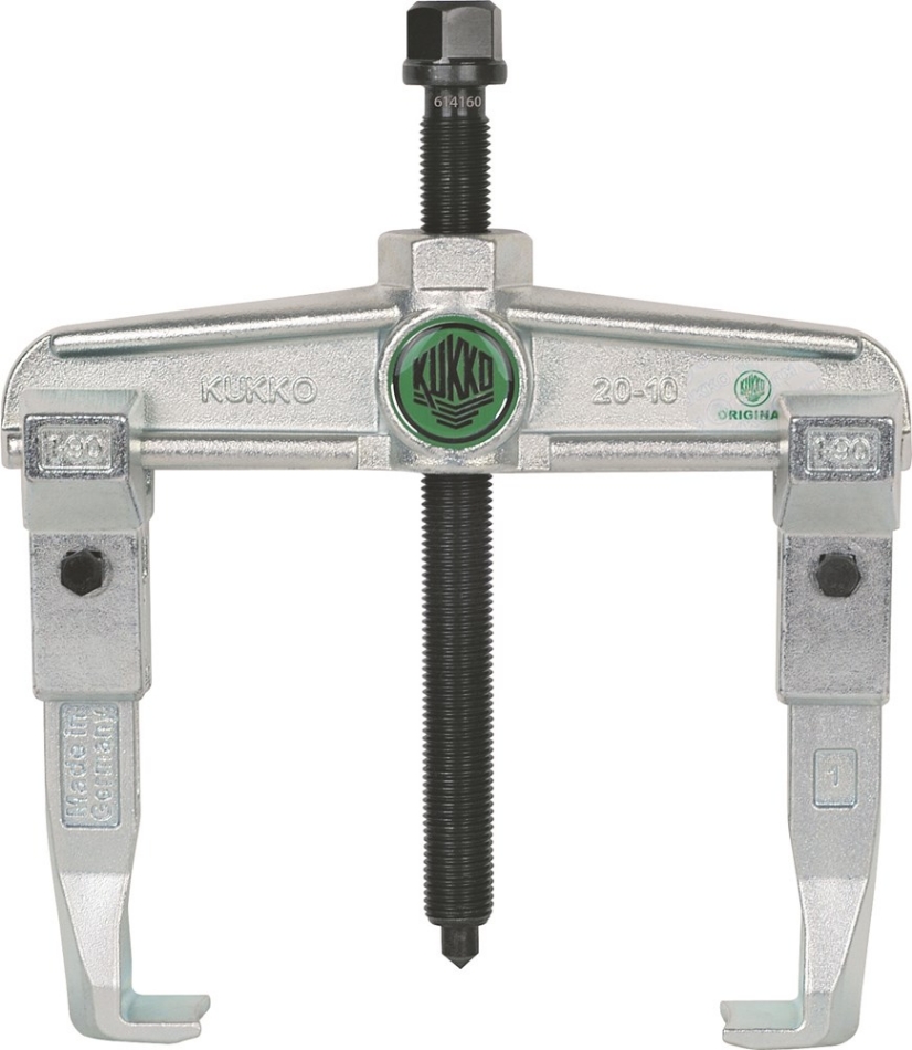 Standaard trekhaken. Plaatsbesparende twee-armige brug in elke positie parallele trekhaken, waardoor alleen de draagvlakken met het eraf te trekken deel in aanraking komen. Met glijdende altijd parallelle trekhaken. Indien er voldoende ruimte om het te trekken opbject is, adviseren wij om een 3-armige trekker Baureihe 30 te gebruiken. Mechanische spindels. Draad is voorzien van speciale coating