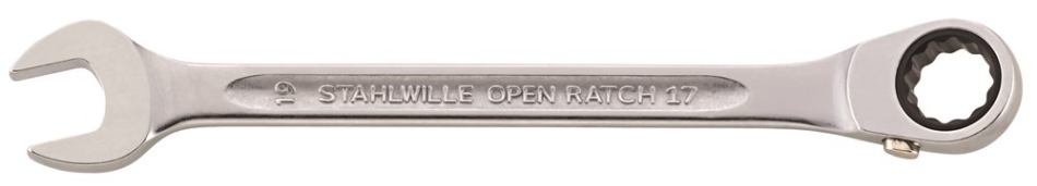 Omschakelbaar, twaalfkant, 72 tands, voor werkzaamheden in kleine ruimten, draaiingshoek 5°, ringzijde 15° gebogen, Chrome-Alloy-Steel, verchroomd.