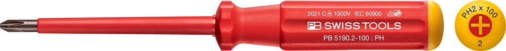 Classic VDE schroevendraaier voor Phillips-kruiskopschroeven. Volledig geïsoleerd tot 1000 V AC / 1500 V DC volgens IEC/EN 60900. VDE gekeurd, veilig werken tot 1000 V AC / 1500 V DC. Slank hecht, plaatsbesparend en ideaal voor fijn afstelwerk.