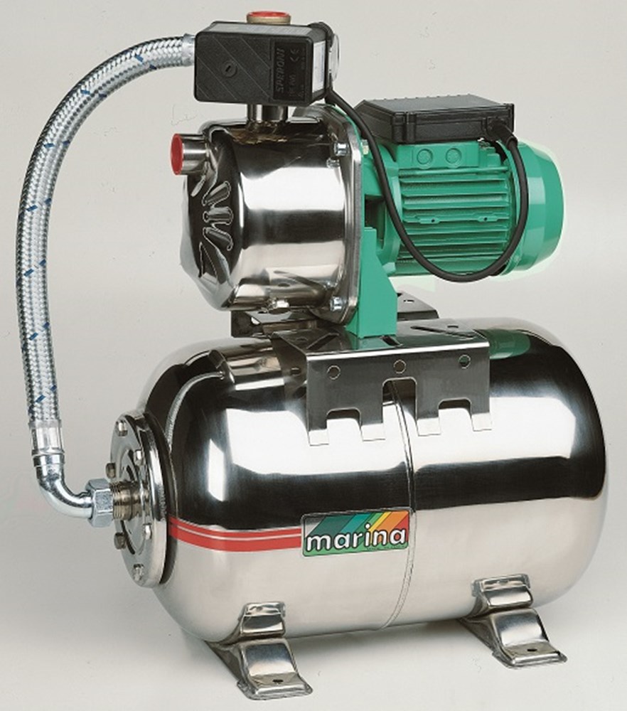 Deze Marina centrifugaalpomp doet meer dan het water omhoog pompen. De hydrofoorgroep zorgt voor een extra druk op het water, zodat u de waterleiding kunt bevoorraden of extra druk erop kan zetten. U kunt de pomp onbeheerd wegzetten want door de drukschakelaar schakelt de pomp automatisch aan als de druk wegvalt. Bijvoorbeeld door het openen van een kraan.