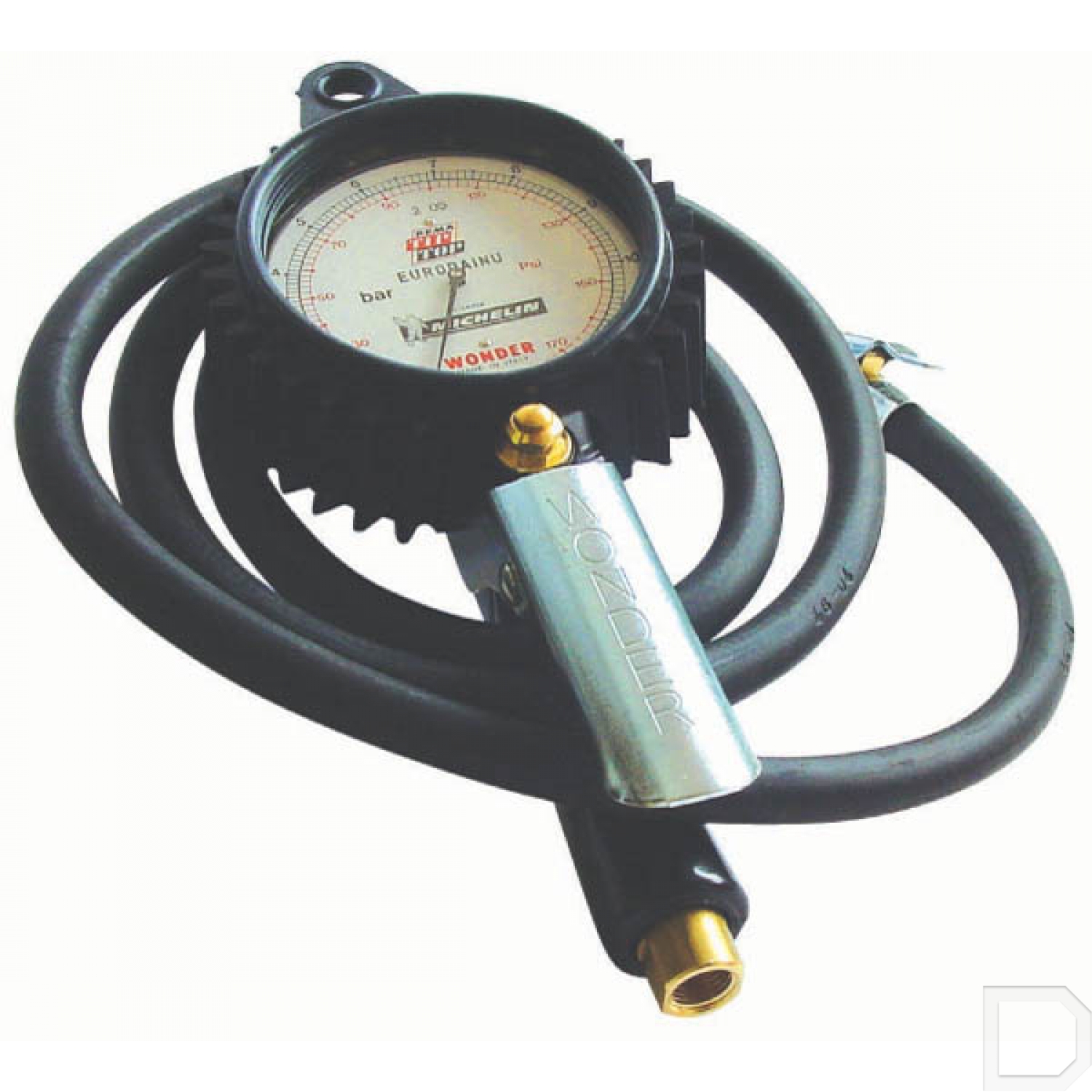 Bandenvulmeter Eurodainu 0,7-12 bar 10-170 PSI 1,5 m slang Wonder bandenvulmeter Eurodainu 'Michelin' uitvoering (met Michelin licentie) Deze bandenvulmeter is voorzien met 1.5 meter vulslang. Bijzonder is dat er ondanks de nauwkeurige meting geen belemmering van de luchtstroom naar de band is.