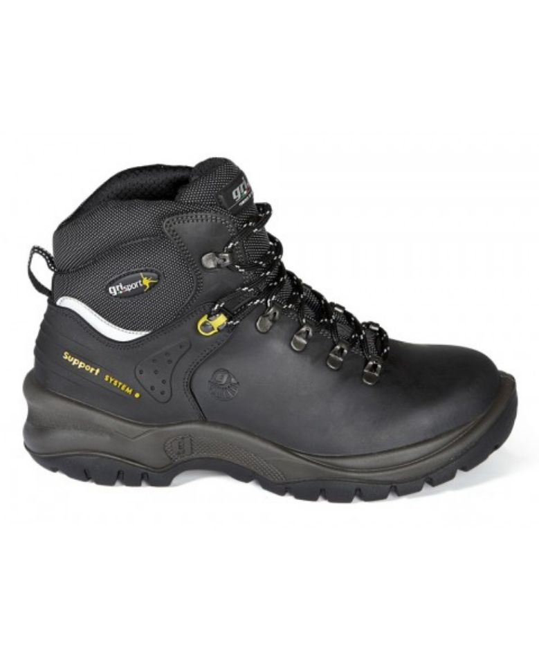 Deze zwarte lederen werkschoen van het merk Grisport type 773L met veiligheidsklasse S3 heeft een geperforeerde stalen neus en een stalen tussenzool. Dankzij de PU/Nitril zool met antislipprofiel is deze schoen bestand tegen 300°C contactwarmte. Het Heel Support System geeft extra steun en bescherming aan deze werkschoen. Dit hoge model veiligheidsschoen heeft de volgende kenmerken: uitneembare inlegzool, HRO, SRC, warmte isolatie. De Grisport 773L bestaat uit de volgende materialen: bovendeel: leer, voering/binnenzijde: Cambrelle®, zool/onderzijde: PU/nitril.