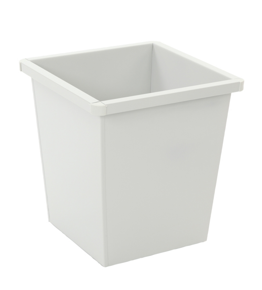 Metaal, vierkant, grijs, 30 x 30 x 36 cm kunststof hoek, inhoud 27 l.