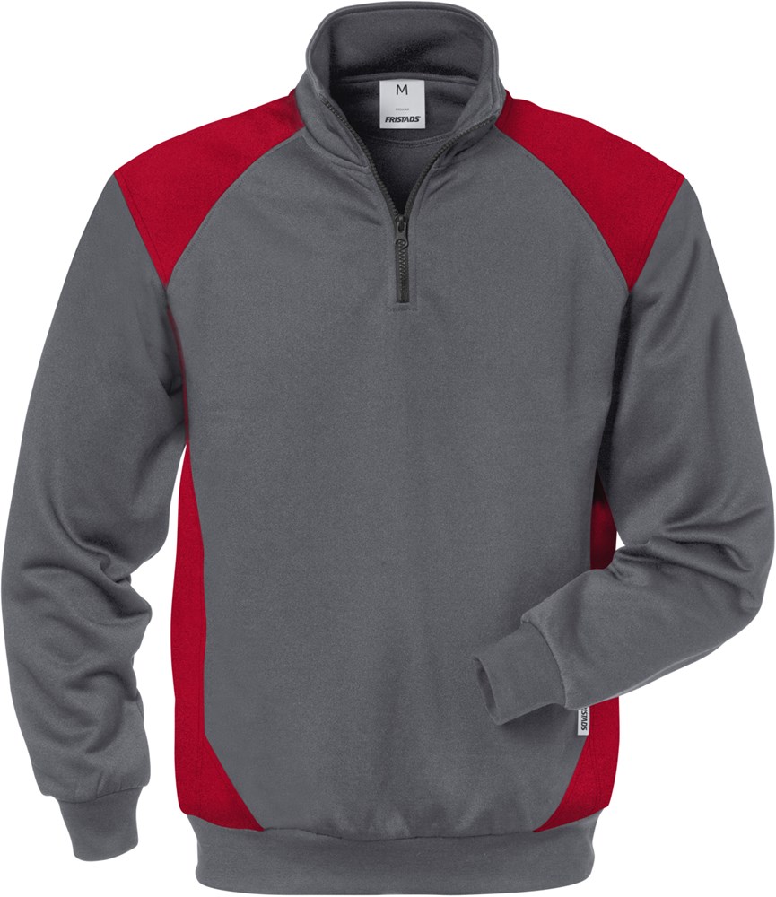 FRISTADS Sweater Met Korte Rits 7048 SHV Grijs/rood 3XL