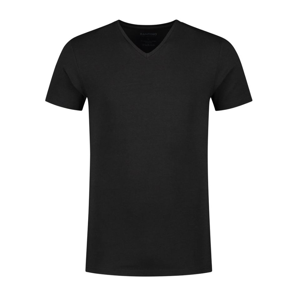 T-shirt, 65% bamboe / 32% katoen / 3% elastaan, 180 gr/m², single jersey, modern fit met V-hals, ademend en anti-bacterieel.