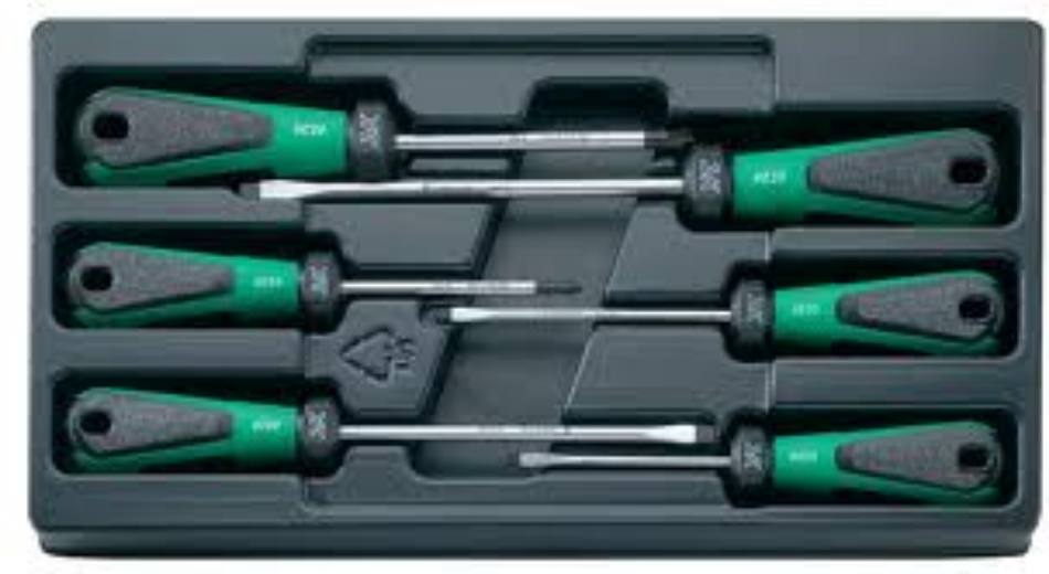6-delig, 3-componenten-greep, inhoud: 4820: 0,6 x 3,5 x 75 mm, 0,8 x 4,0 x 100 mm, 1,0 x 5,5 x 125 mm, 1,2 x 6,5 x 150 mm; 4830: gr. 1; gr. 2.