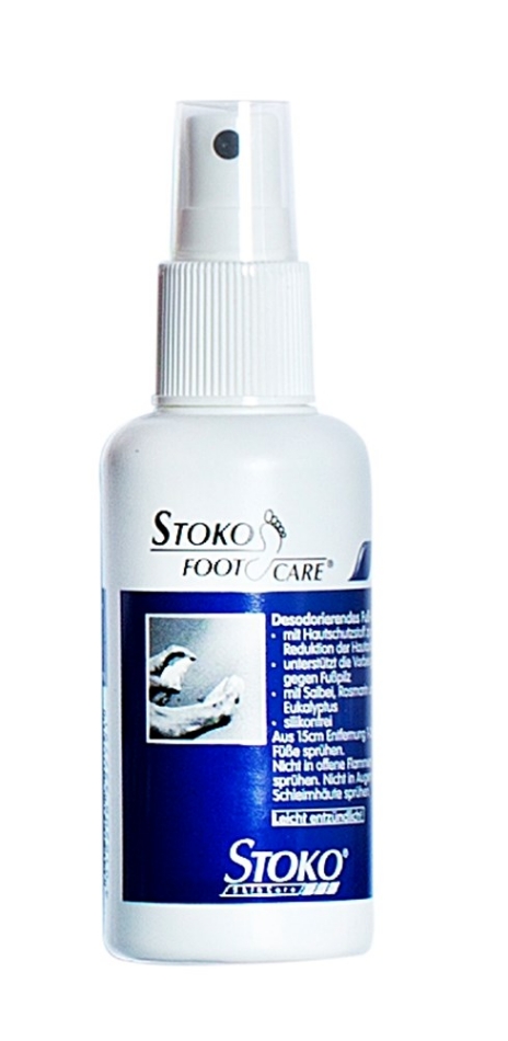 Stoko Foot Care reduceert zwelling van de huid in luchtdichte schoenen en helpt voetschimmels te voorkomen, hij heeft tevens ontgeurende werking door toevoeging van etherische oliën (rozemarijn, salie, eucalyptus).