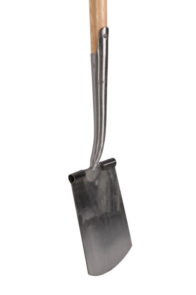 Deze spade is geschikt voor het spitten in aarde en zware kleigrond. Tevens is dit blad blank geslepen dit houdt in dat het zichzelf slijpt, hierdoor glijdt hij makkelijker de grond in. De spade heeft een zwanenhals blad dit houdt in dat de steel meer stevigheid heeft doordat het hout diep in het huis van de zwanenhals zit. Hierdoor kan hij niet zo gemakkelijk breken, en kan hij dus zwaardere grondsoorten aan. De spade heeft een rechte bovenzijde met een opstapje zodat er extra druk met de voet uitgeoefend kan worden. Het blad van de spade dient recht of bijna recht tot de rand in de grond te worden gestoken. Dan trek je de greep bij de schacht naar achteren om de grond los te werken. Als je de juiste lengte van de steel hebt uitgezocht sta je hierbij recht op. Buig dan je knieën en til nu de schuin staande spade met grond op door je knieën weer te strekken. Het buigen van de knieën is belangrijk voor het sparen van je rug.