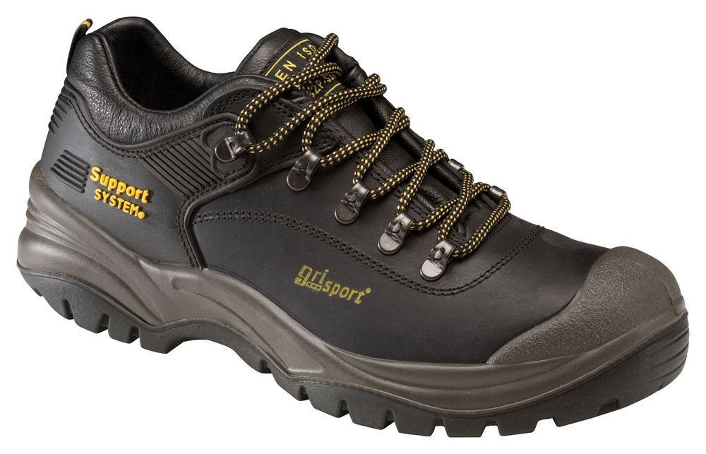 Deze zwarte lederen werkschoen van het merk Grisport type 70216L met veiligheidsklasse S3 heeft een geperforeerde stalen neus en een stalen tussenzool. Dankzij de PU/Nitril zool met antislipprofiel is deze schoen bestand tegen 300°C contactwarmte. Het Heel Support System geeft extra steun en bescherming aan deze werkschoen. Dit lage model veiligheidsschoen heeft de volgende kenmerken: overneus, uitneembare inlegzool, HRO, SRC, warmte isolatie. De Grisport 70216L bestaat uit de volgende materialen: bovendeel: leer, voering/binnenzijde: leer, zool/onderzijde: PU/nitril.