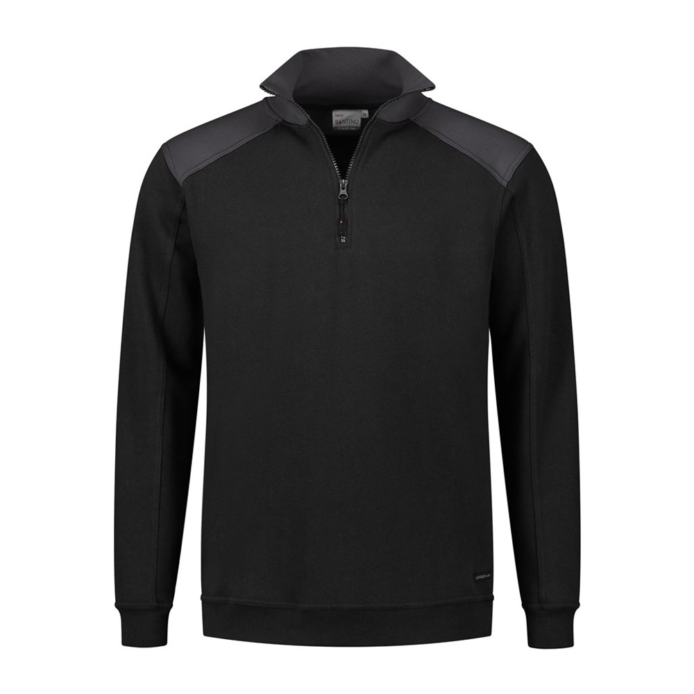 Zipsweater, 50% katoen / 50% polyester, 280 gr/m², french terry met geruwde binnenzijde, regular fit met opstaande kraag met korte YKK rits, mouw met ribmanchet tailleband in 1x1 rib, kraag en schouderstuk in contrast kleur.