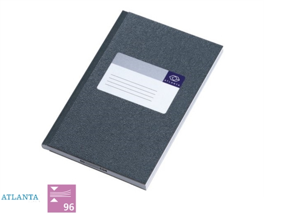 Kantoorboek met harde kaft. Houtvrij gelinieerd schrijfpapier. Etiket op de voorzijde. Genaaid gebonden. Formaat 165x105mm.