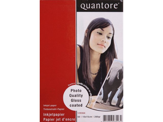 Quantore inkjetpapier 245gram foto glans 10x15cm 50vel, j39110/a5