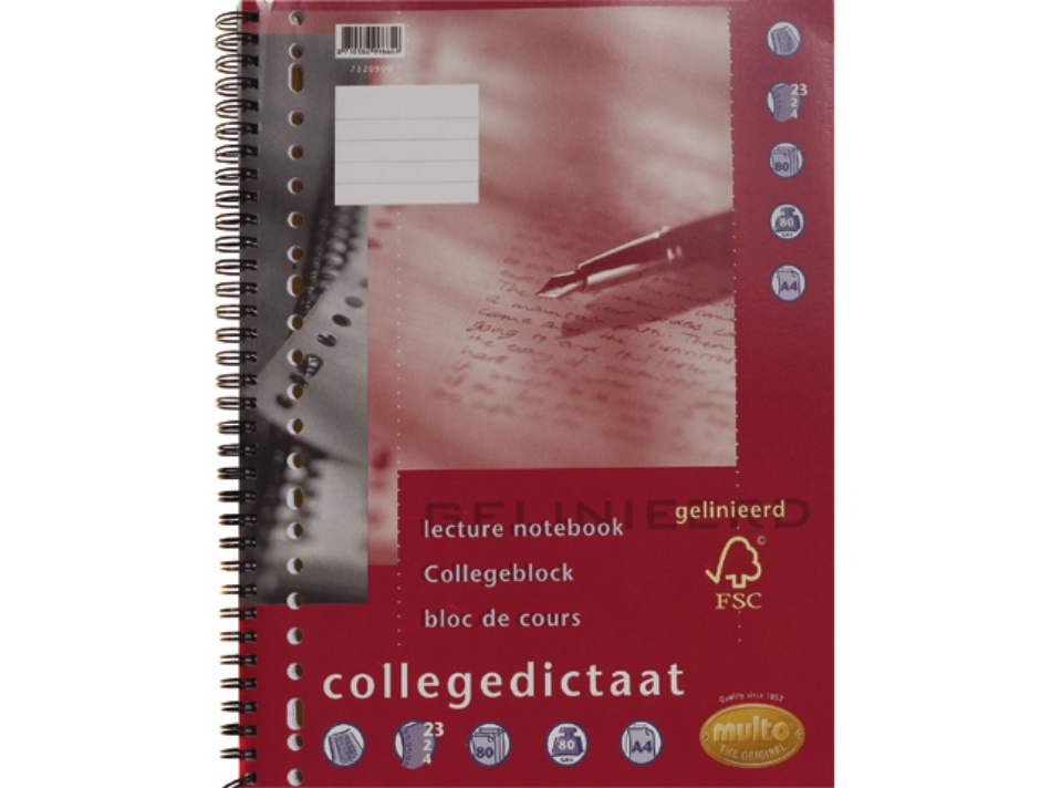 Multo collegedictaat 23rings a4 lijn 80gram 80vel, 7320900