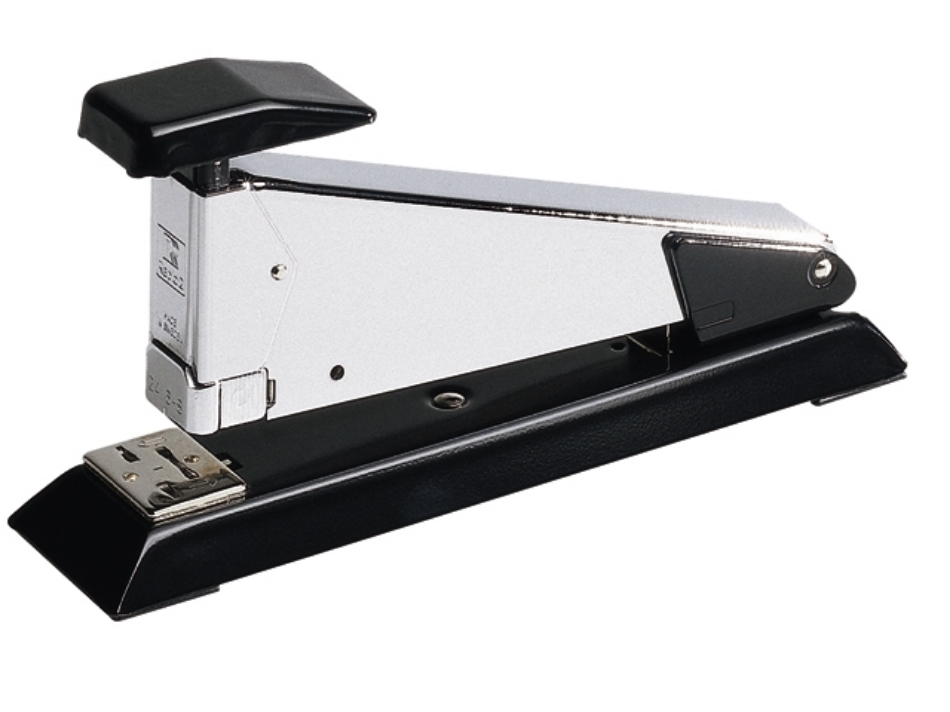 Grote nietmachine. Voor 150 nietjes 24/6, 24/8 of 24/8+ of 200 nietjes 26/6, 26/8 of 26/8+. Metalen uitvoering. Capaciteit tot 50 vel. Inlegdiepte 105 mm.
