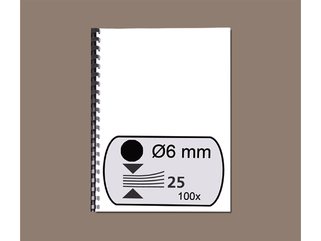 GBC bindrug, 6 mm, a4, 21,rings, verpakking 100 stuks, 4028173, zwart