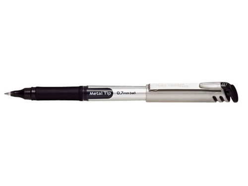 Energel roller met een in metaal gevatte punt. Ideale samensmelting van gel en vloeibare inkt. Droogt snel. Grote schrijflengte. Rubber grip en dop met metalen clip. Lijndikte 0,4 mm.