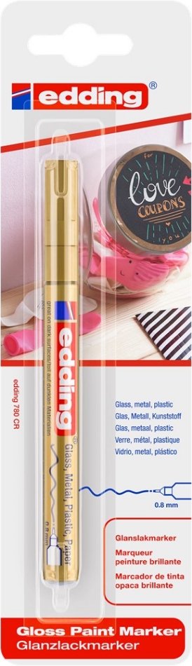 Glanslakmarker voor zeer dekkend, permanent en veegvast schrijven of versieren op gladde - zelfs donkere en transparante - materialen, zoals glas, metaal, kunststof en gecoat papier.