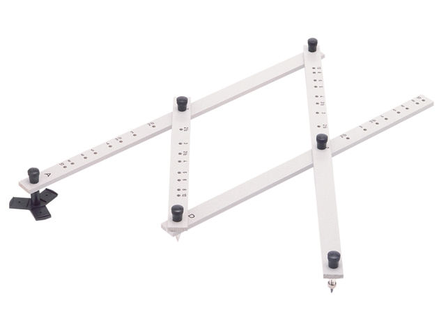 Materiaal: hardhout grijs gespoten met vernikkeld beslag. Gemakkelijk verstelbaar. 18 instelmogelijkheden. Wordt geleverd met kunststof fixeerblok. Lengte 34 cm.