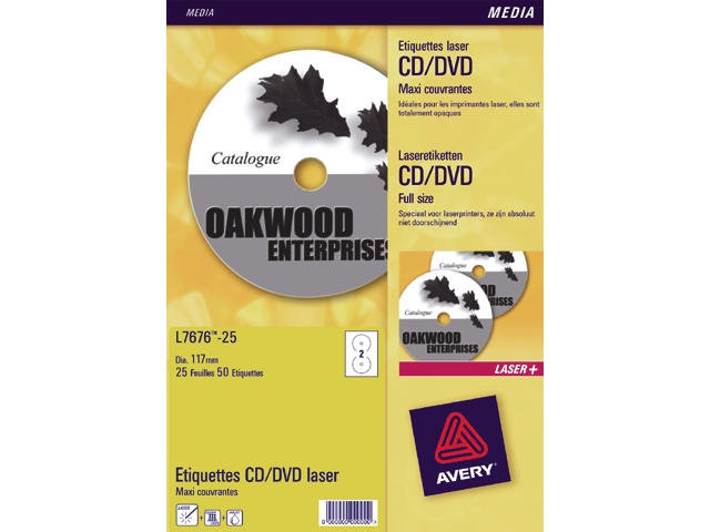 Avery etiket cd, laser inkjet, l7676-25, opaal