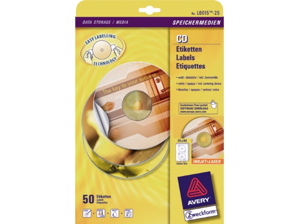 Zweckform etiket cd wit, verpakking 50 stuks, l6015-25, wit