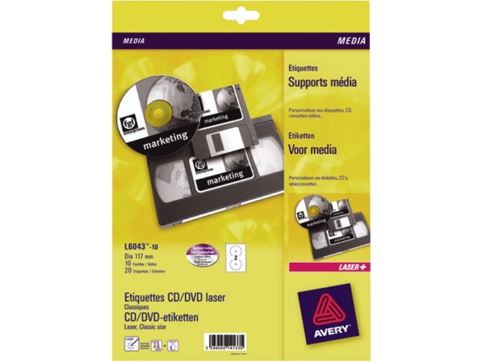 Avery etiket cd, 117 mm, verpakking 50 stuks, l6043-25