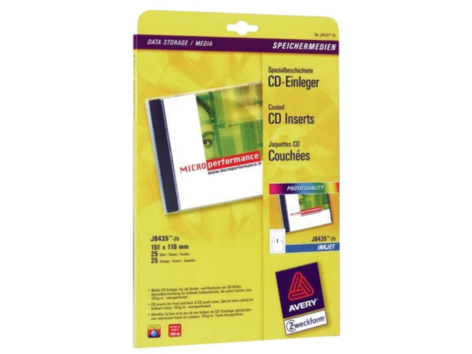 Avery cd inlegkaart, 151 x 118 mm, 165 grams, verpakking 25 stuks, j8435-25