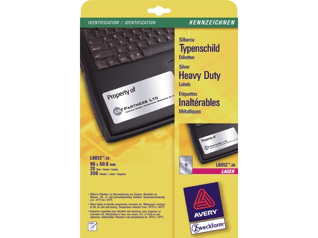 Zweckform etiket, 96 x 50.8 mm, verpakking 200 stuks, l6012-20, zilver