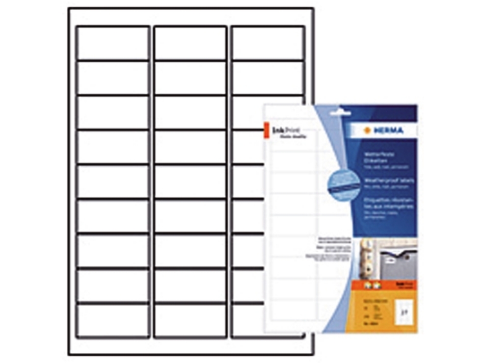 Herma etiket, 63.5 x 29.6 mm, a4, verpakking 270 stuks, superprint, inkprint, 4864, wit
