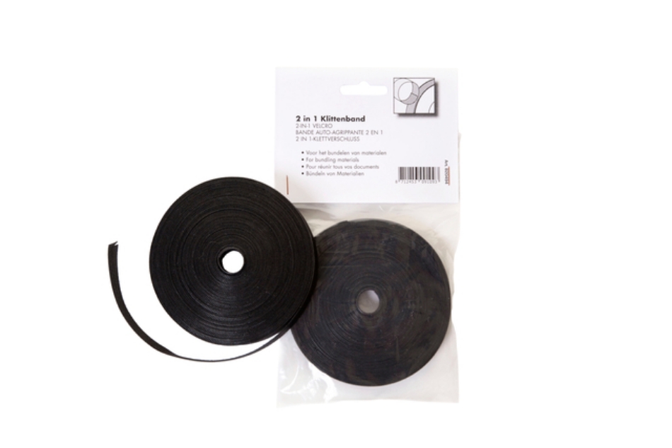 Klittenband kabelbinder 2-in 1 13mmx10m zwart