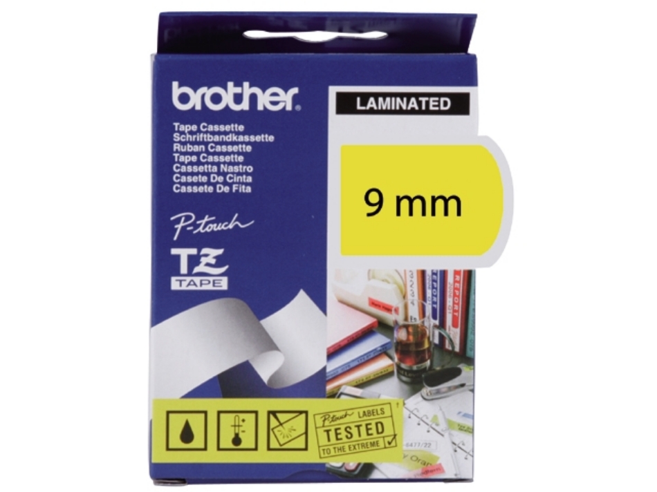 Brother labeltape, 9 mm x 8 meter, tze-621, geel/zwart