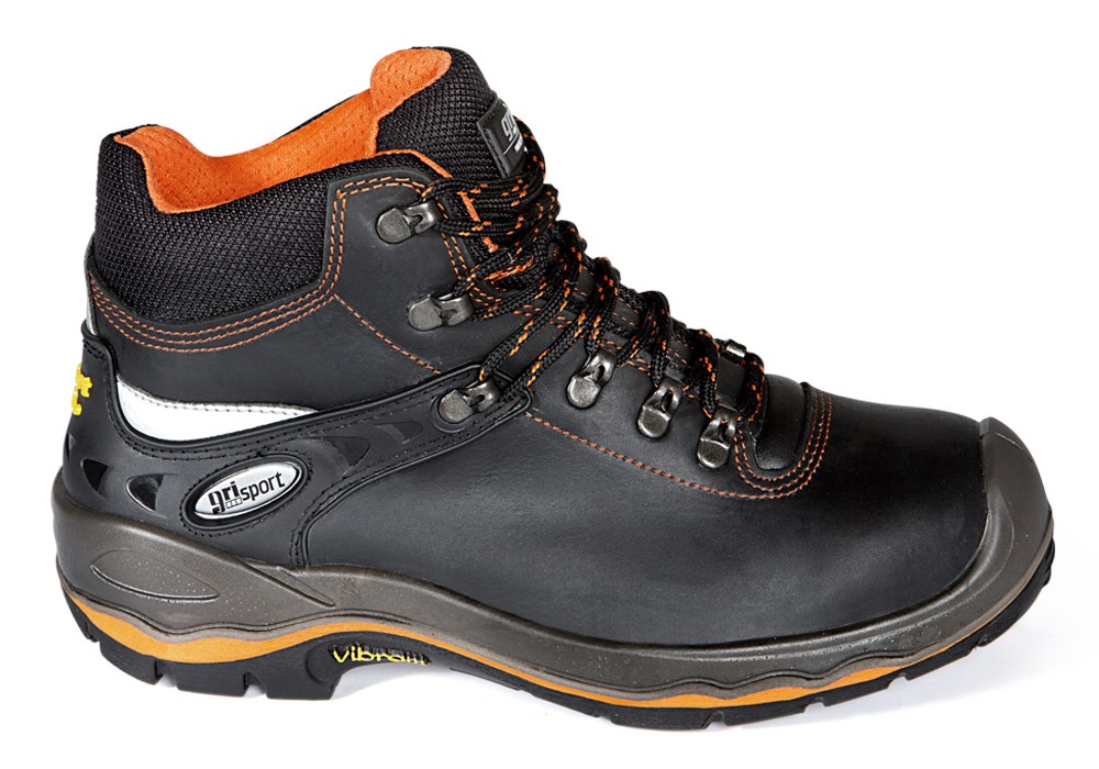 Deze zwart/oranje werkschoen van het merk Grisport type 72003L met veiligheidsklasse S3 heeft een stalen geperforeerde neus en een stalen tussenzool. Dankzij de PU/Vibram® zool met antislipprofiel is deze schoen bestand tegen 300°C contactwarmte. Het Heel Support System geeft extra steun en bescherming aan deze werkschoen. De Vibram ® zool is erg licht en slijtvast. Deze hoge schoen heeft de volgende kenmerken: overneus, uitneembare inlegzool, HRO, SRC en warmte isolatie. De Grisport 72003L bestaat uit de volgende materialen: bovendeel: leer, voering/binnenzijde: Cambrelle®, zool/onderzijde; PU/Vibram®.