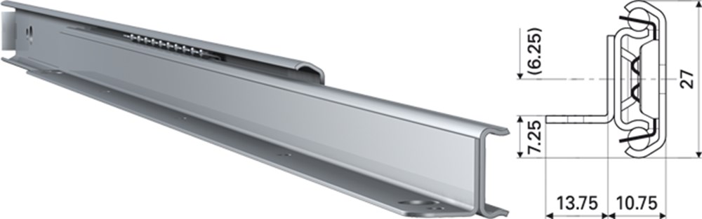 Type EMS 2 - TR-2711.Twee-delige geleider tot 75% uittrekbaar met aanslagrubber en ladedrager.