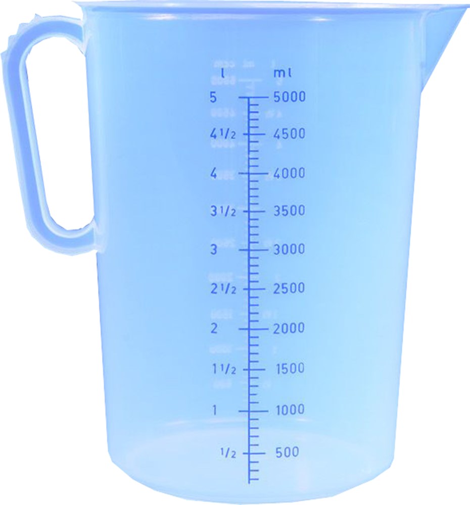 Polypropyleen, met maatverdeling. Zuur- en chemicaliënbestendig.