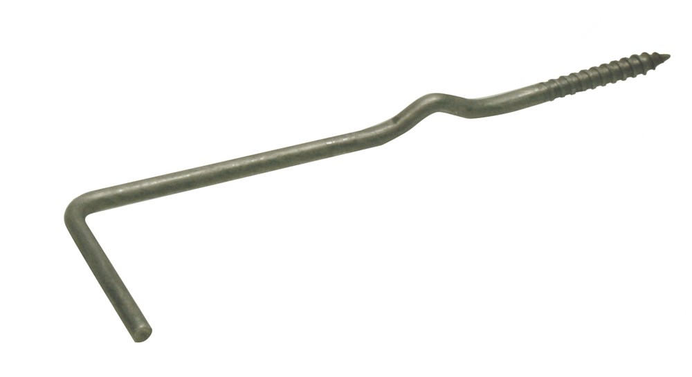 Spouwanker, voorzien van waterhol en houtdraad voor rechtstreekse bevestiging in het hout of met een kraagplug in beton en metselwerk van het binnenblad en aan het uiteinde een haak voor de gemetselde buitenmuur.