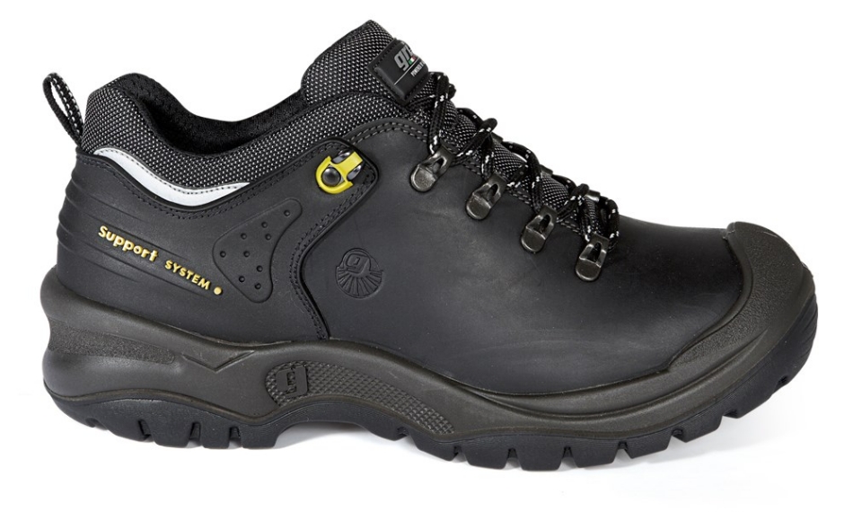 Deze zwarte lederen werkschoen van het merk Grisport type 801L met veiligheidsklasse S3 heeft een geperforeerde stalen neus en een stalen tussenzool. Dankzij de PU/Nitril zool met antislipprofiel is deze schoen bestand tegen 300°C contactwarmte. Het Heel Support System geeft extra steun en bescherming aan deze werkschoen. Dit lage model veiligheidsschoen heeft de volgende kenmerken: overneus, uitneembare inlegzool, HRO, SRC, warmte isolatie en antistatische eigenschappen. De Grisport 801L bestaat uit de volgende materialen: bovendeel: leer, voering/binnenzijde: Cambrelle®, zool/onderzijde; PU/nitril.
