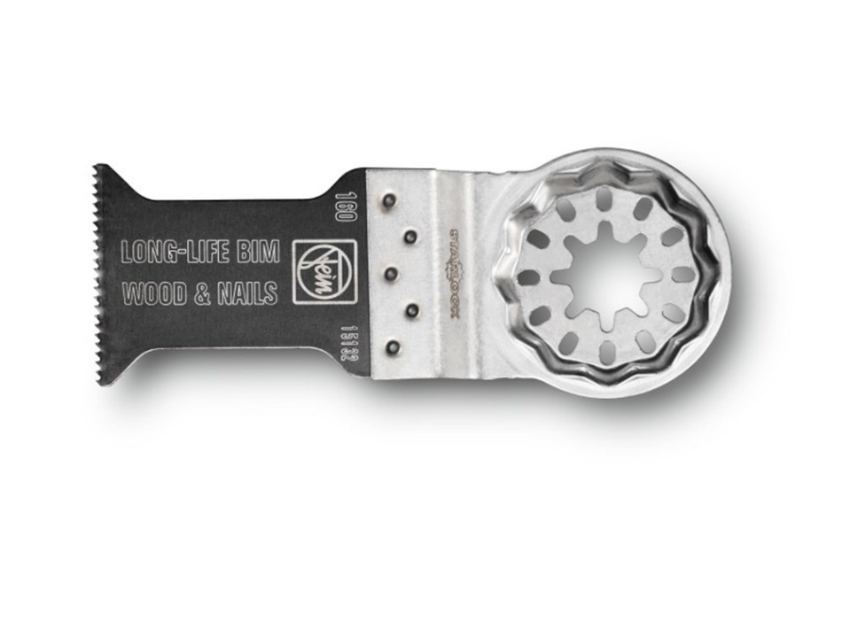 E-Cut Long-Life-zaagblad SL 50x35 - Bimetaal met geschrankte houtvertanding voor alle hout-, gipsplaat- en kunststof materialen. Uitstekende levensduur, hoge zaagkwaliteit en een goede zaagsnelheid. Uiterst robuust, ook ongevoelig voor spijkers die in hout zitten (tot ca. Ø 4 mm), metselwerk enz.