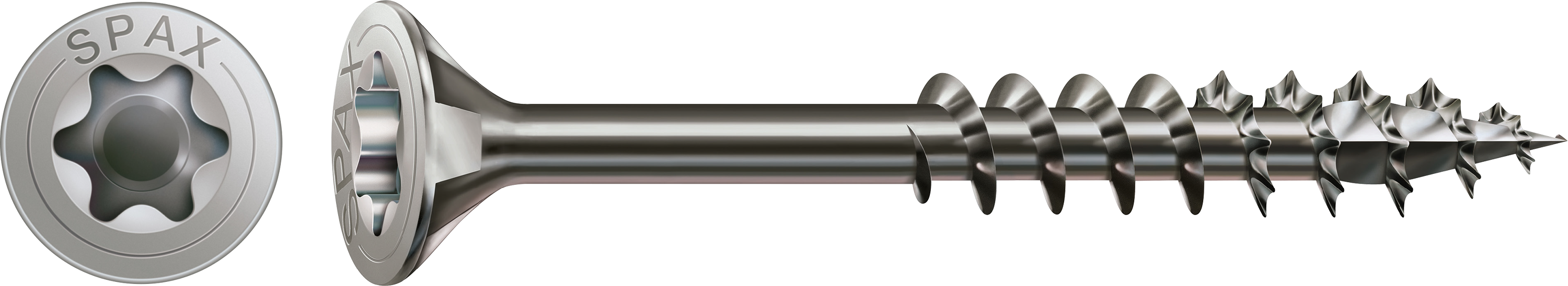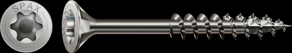SPAX platkop, T-STAR plus, 4CUT, MULTI-kop, deel schroefdraad, R.v.s. A2 1.4567 Materiaal: R.v.s. A2 II, model kop: platkop, aandrijving: T-STAR plus.