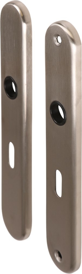 Ovaal model. Rvs AISI 304 (A2), mat geborsteld. Afmeting 225x40x8 mm. Levering per paar. Inclusief twee schroeven M4x50 mm.