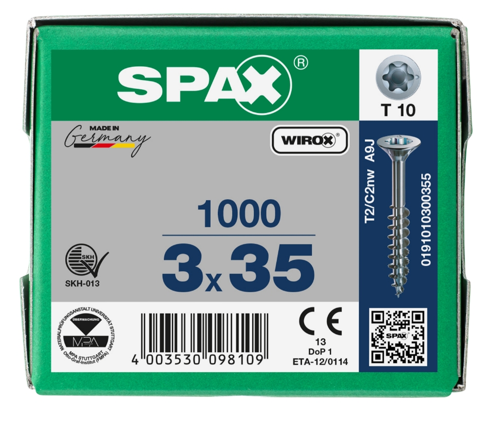 SPAX platkop, T-STAR plus, 4CUT, MULTI-kop, deel schroefdraad, WIROX A3J Materiaal: Blank verzinkt A2J, bit: T 10, model kop: platkop, aandrijving: T-STAR plus.