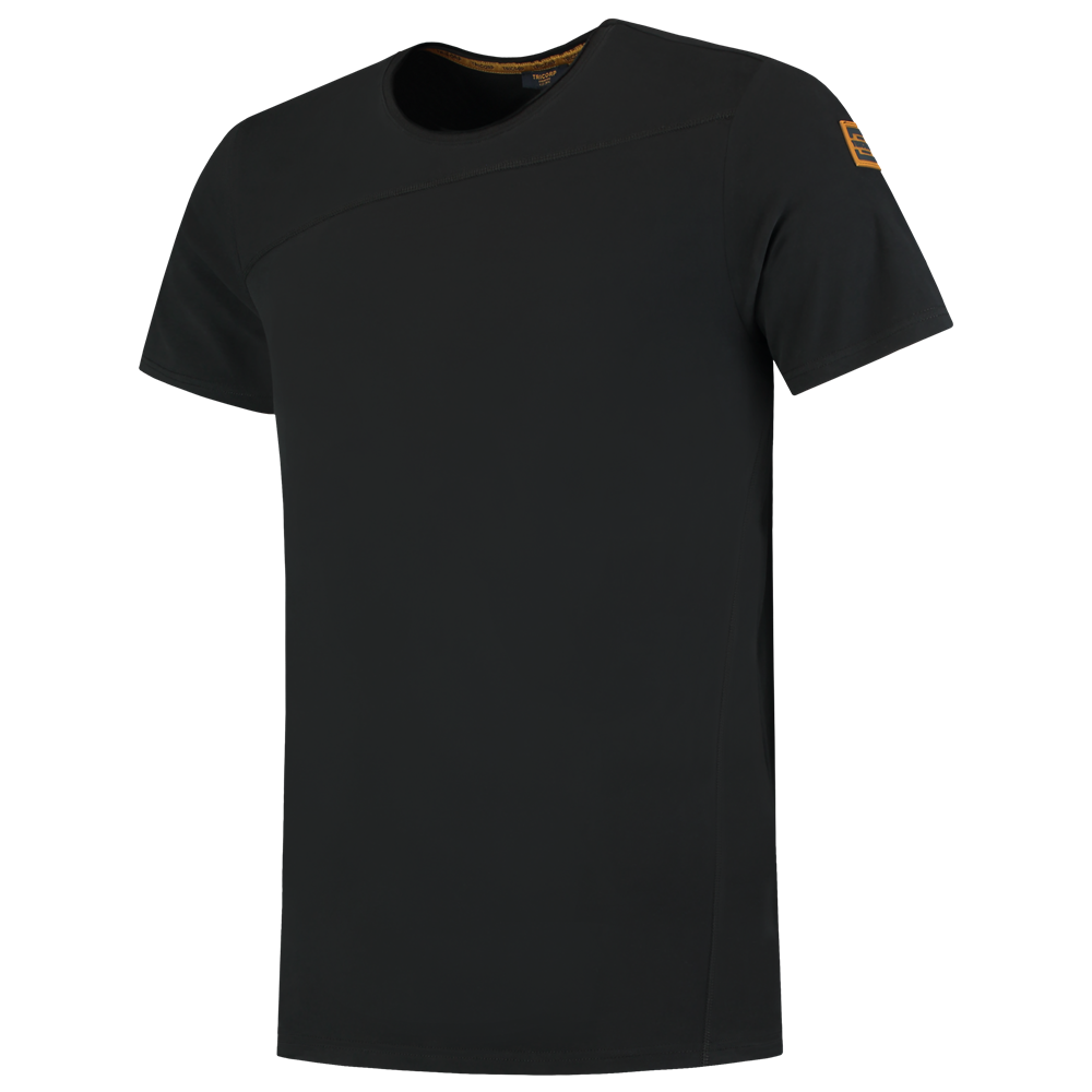 Korte mouw, ronde hals, ribboord, stretch, single jersey, katoen/elastaan, uni color, 40 graden.