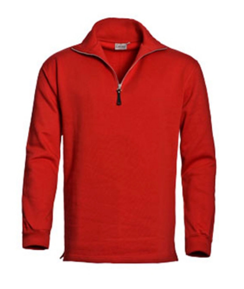 Sweater met een opstaande kraag met metalen 1/4 ritssluiting. De kraag en manchetten met elastaan en met een rechte onderzijde met splitjes in de zijnaden. Kwaliteit: 280 gr/m² 50% katoen / 50% polyester.