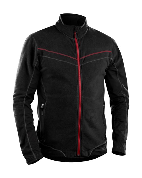 Slim-fit fleecejack ideaal als tussenlaag. Voorzien van stretch materiaal aan de zijkanten. Voorzakken met rits en twee binnenzakken.Verlengde achterkant voor extra comfort. Blåkläder-print op kraag achterkant. De 1-weg rits in kunststof heeft een windvanger met fleece aan binnenzijde.