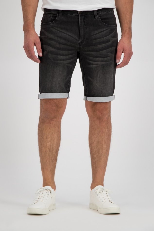 Heren stretch jeans short, YKK rits, power stretch denim, comfort fit en slim fit, licht afgewassen jeans.