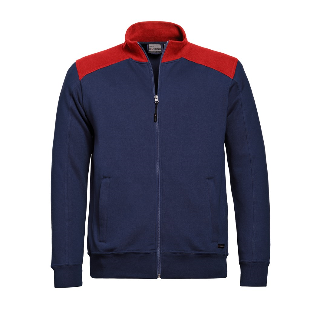 Sweatvest, 50% katoen / 50% polyester, 320 gr/m², french terry met geruwde binnenzijde, modern fit met opstaande kraag, mouw met ribmanchet, tailleband 1x1 rib, YKK rits, kraag en schouderstuk in contrast kleur.