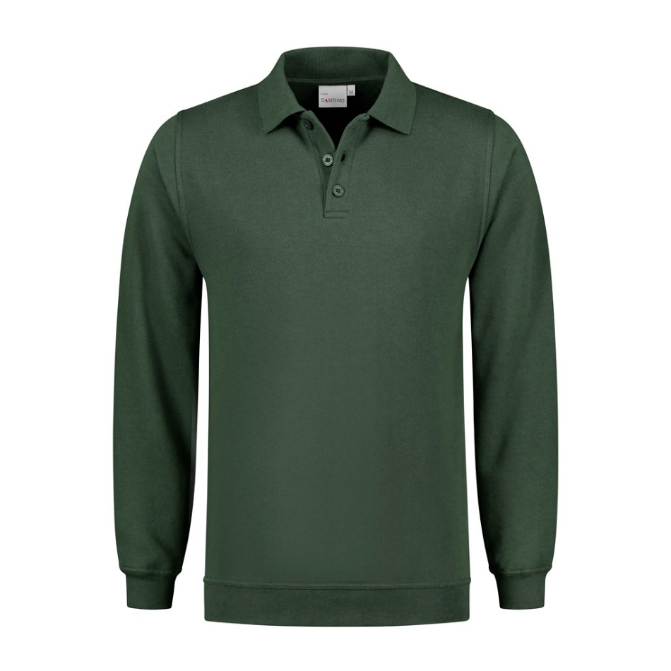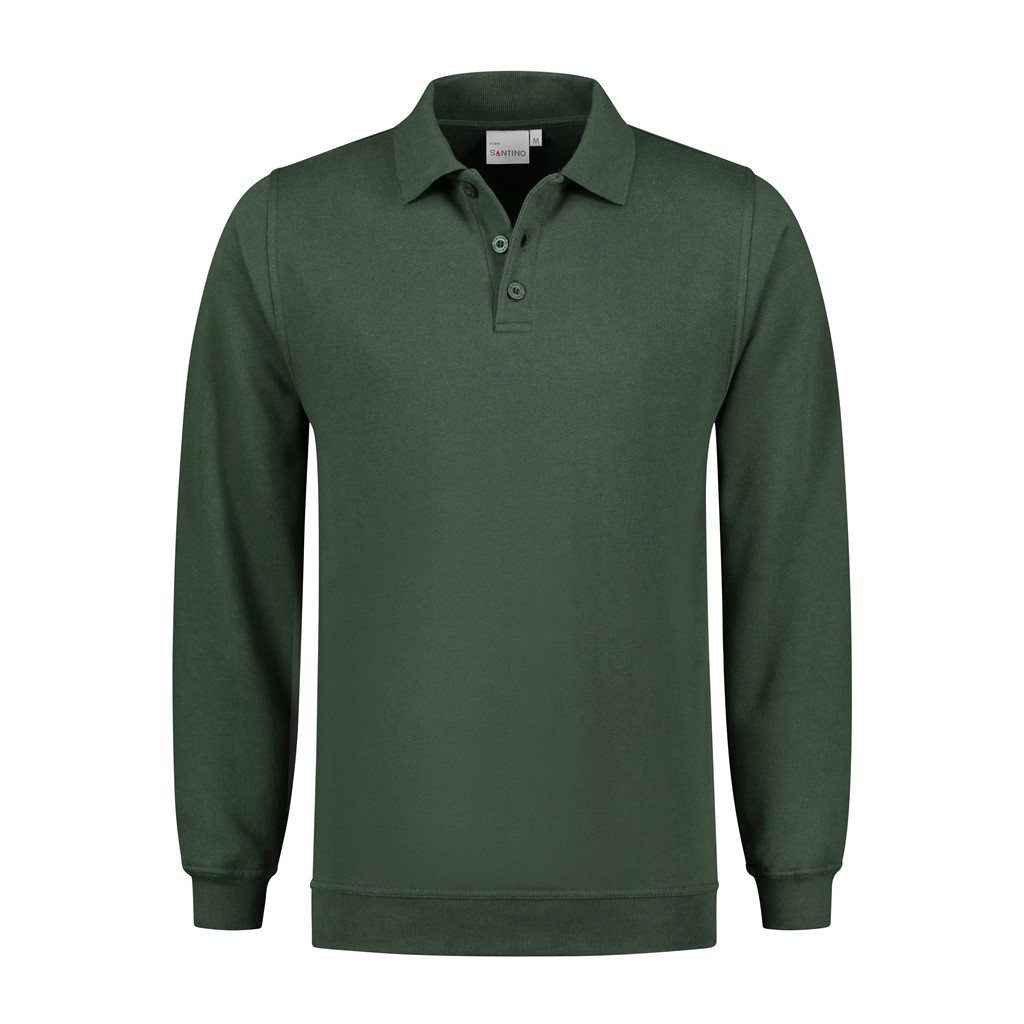 Polosweater, 50% katoen / 50% polyester, 280 gr/m², french terry met geruwde binnenzijde, regular fit met polokraag, 3-knoopsluiting, mouw met ribmanchet en tailleband in 1x1 rib.