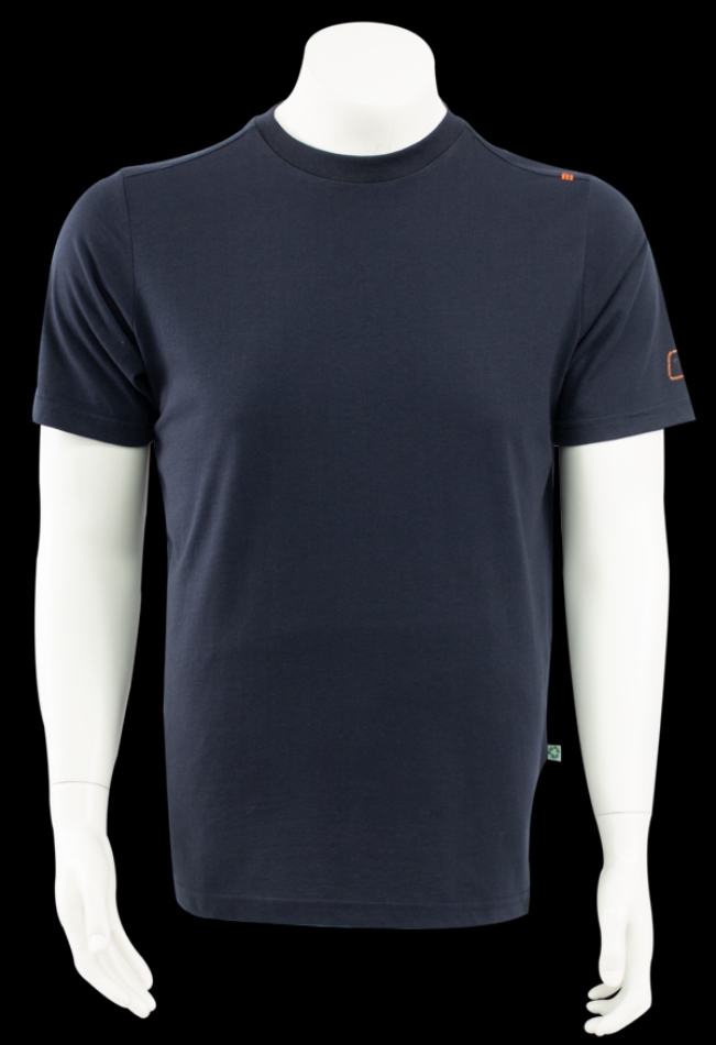 Ronde hals, korte mouw, gewicht: 160 gr./m2. Gemaakt vaan 50% recycled textiel, 50% recycled PET-polyester.